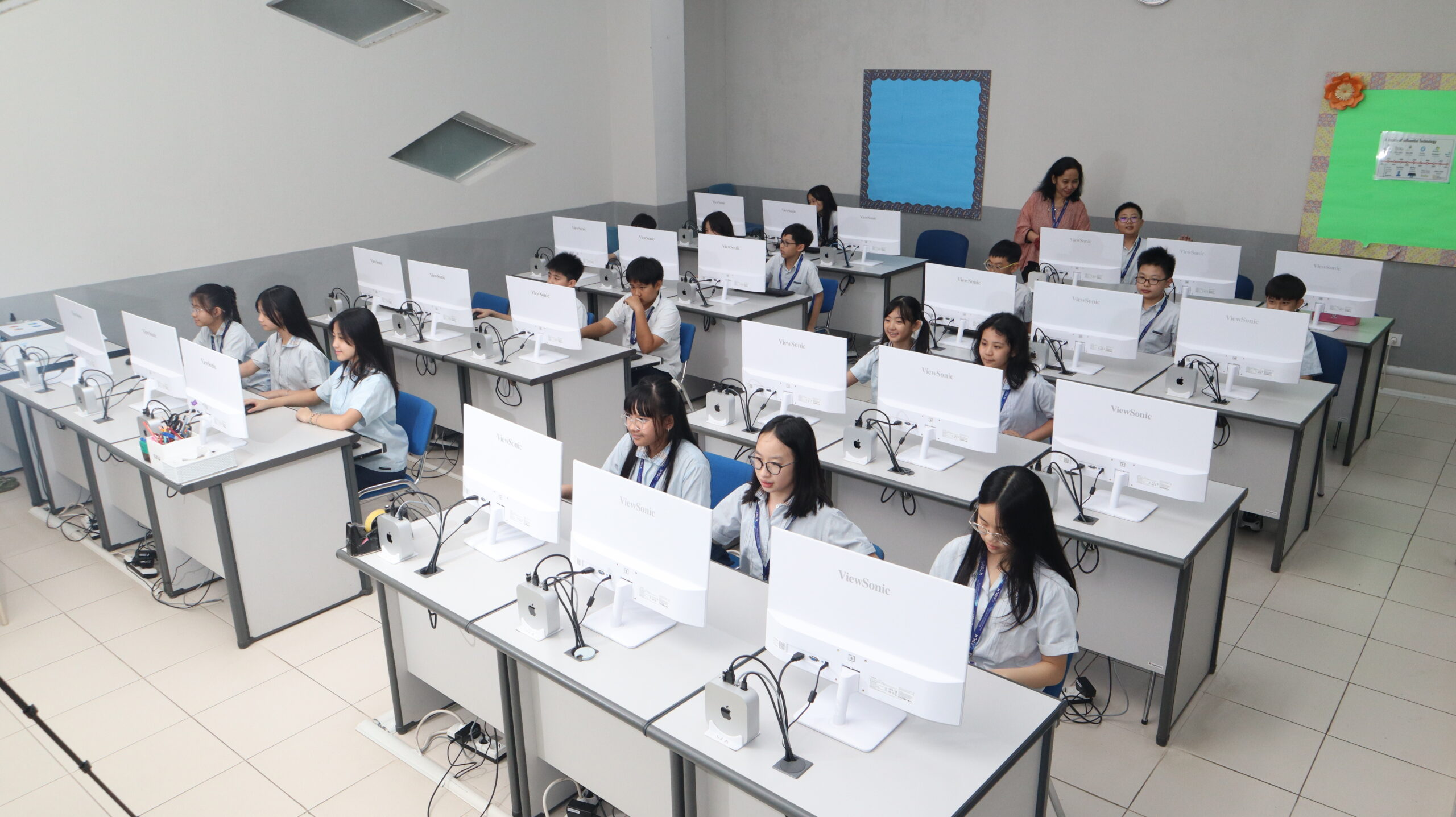 A modern computer lab equipped with Mac devices to support digital learning and creativity.